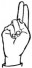 На ћирилици написано КОСТАДИН МИЛАНОВ састоји се из 15 слова [?]. Исписано ћириличном једноручном азбуком за глувонеме: